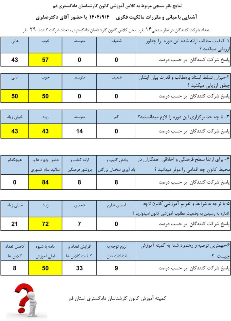 نتیجه نظرسنجی “آشنایی با مفاهیم و مقررات مالکیت فکری” دکتر نصیری 1404.09.04