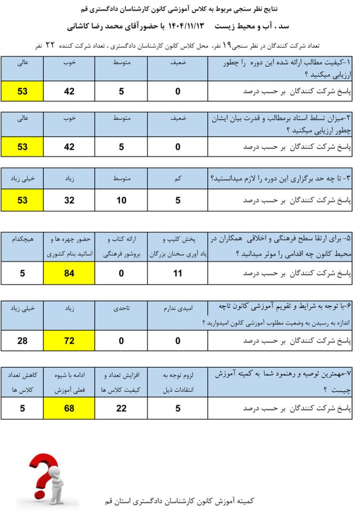 نظرسنجی کلاس آموزشی “سدسازی، آب و محیط زیست” مهندس کاشانی